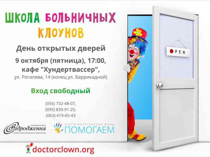 лонтерская команда больничных клоунов Днепропетровска Doctor CLOWN Dnepropetrovsk приглашают вас на День открытых дверей в Школу больничных клоунов.