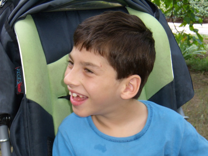 Зараз хлопчику 8 років, він сам не може ходити, сидіти, не говорить, але все розуміє, інтелект збережений. З метою фізичного і розумового розвитку дитини, сім'я знаходила кошти для проходження реабілітації в Дніпропетровську, в міжнародній клініці відновного лікування ім. Козявкіна (Трускавець), в санаторії «Іскра» (Євпаторія), а також курс дельфінотерапії в Партеніті і Севастополі. Після курсу дельфінотерапії у Саші розвиваються розумові здібності, він краще розуміє мову, став більш товариський, спокійний, ліпше спить, намагається вимовляти склади. А найголовніше - покращилися показники енцефалограми. Дитина зміцнилася фізично: тримає спину, повзає, перевертається, володіє руками, ходить при підтримці. Такі досягнення дозволили малюкові відвідувати дитячий садок. Щоб закріпити досягнуті результати. Сашкові просто необхідно пройти дельфінотерапію. Хлопчик не просто розвивається, він заряджається позитивною енергією, прагне до руху і спілкування. А ще Сашка просто обожнює дельфінів!