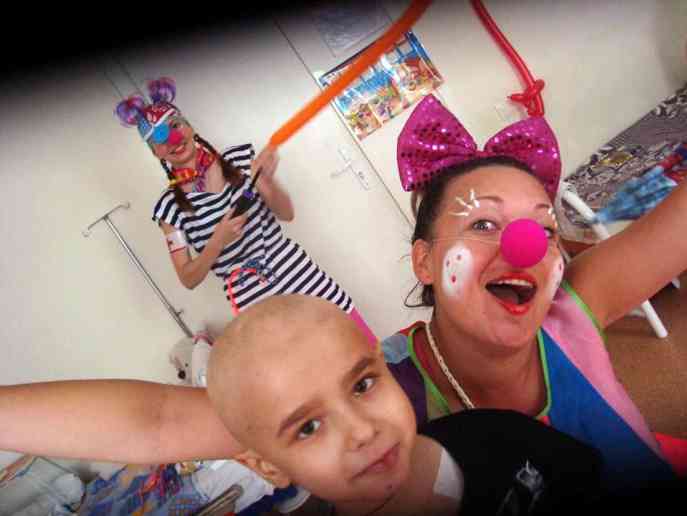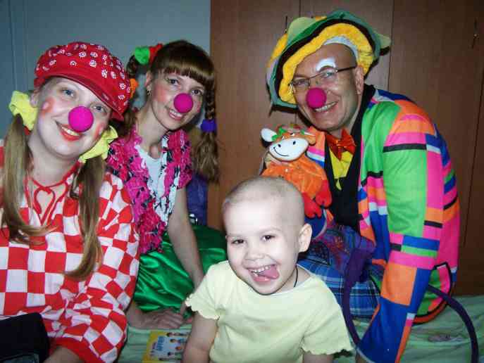 А артисти у нас незвичайні. Вони не просто клоуни. Вони займаються лікарняною клоунадо . Мета їх не просто розважати заради розваг , але заради стимуляції імунної систем , зняття стресу, полегшення больового синдрому, виведення з шокового стану... Вони смішать діток, які перебувають на лікуванні в тих відділеннях лікарень, де лежать подовгу: онкологія, гематологія, травматологія.