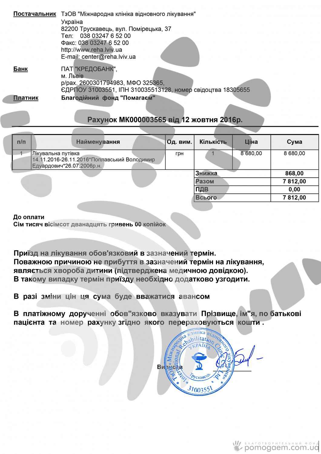 Сім'я не може дозволити собі тричі на рік сплачувати такі рахунки, й надія батьків тільки на нас із вами. Найближчий курс вартістю 7 812 грн призначений на 14 листопада 2016 року. Давайте підтримаємо Вову!