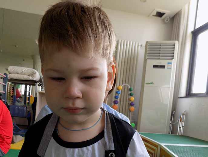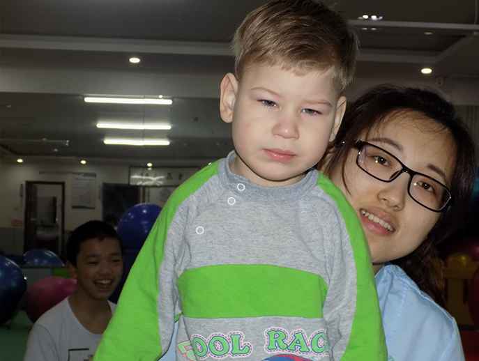 В Китаї у малюка стали набагато краще працювати ручки. Тепер він може попрощатися, помахавши рукою, погладити себе по голові: «Я хороший», простягнути руки на прохання. Макарчик дуже любить, щоби його підкидали в повітря, із задоволенням дивиться мультики для найменших, обожнює грати з водою: хлюпається, пищить і сміється.