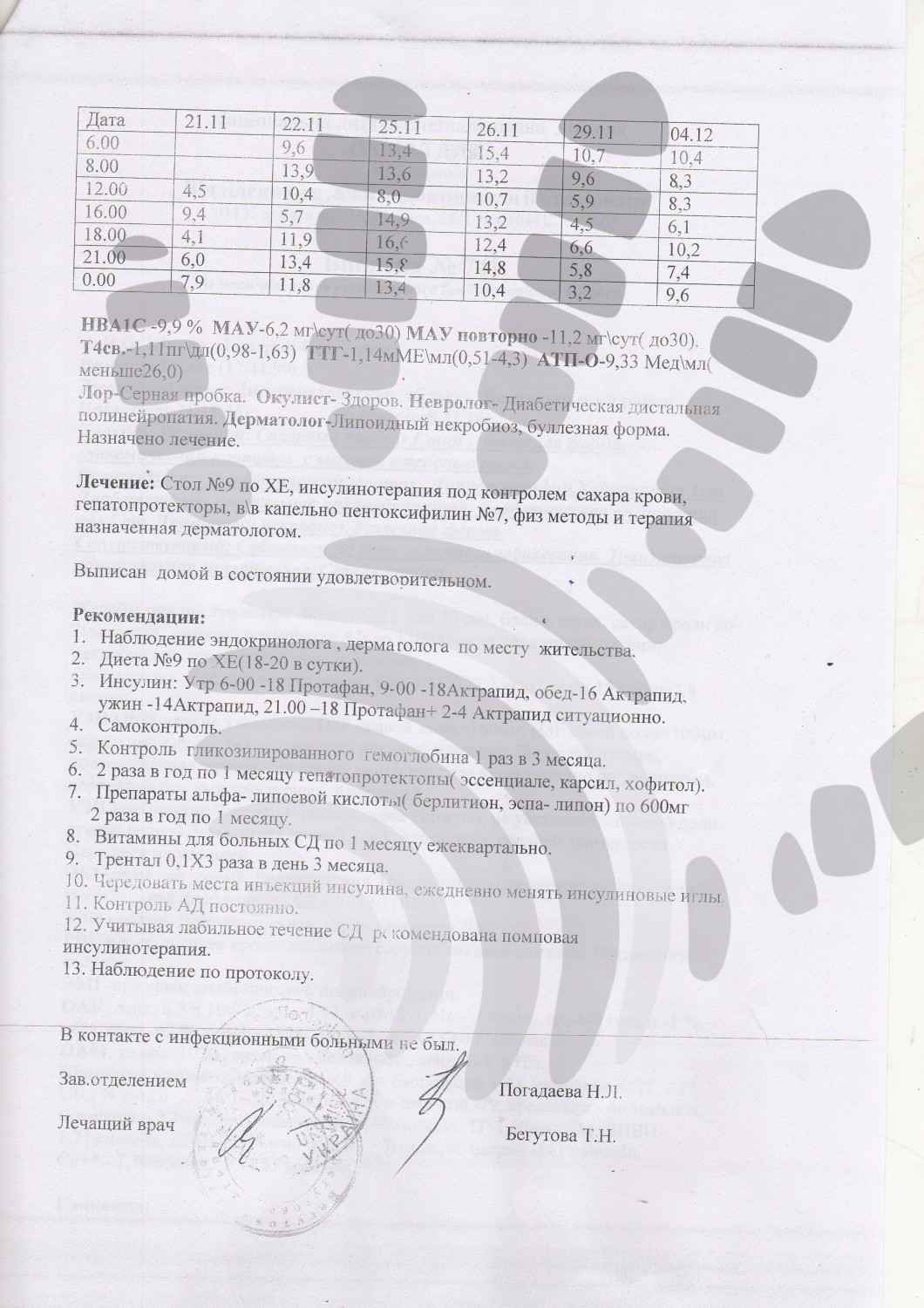 Діагноз: Цукровий діабет І типу, важка форма, глікемічний контроль з високим