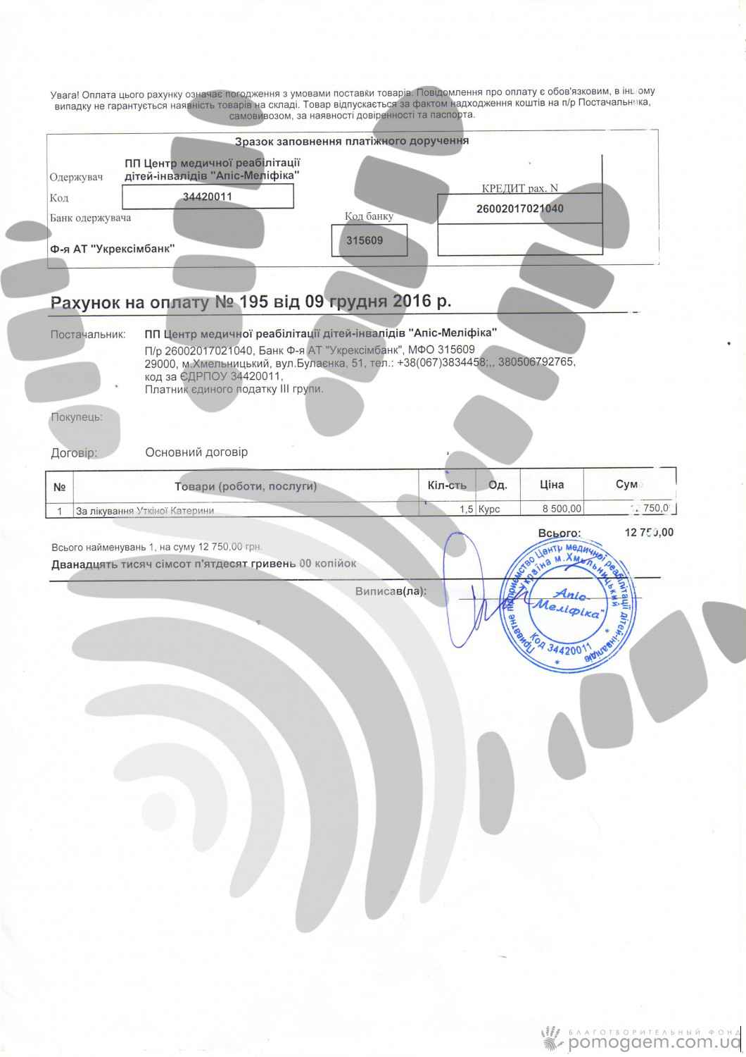 Проте, заняття треба продовжувати, щоб зміцнити спинку й тазостегнові суглоби й зробити, нарешті, перші кроки. Катюшу чекають у центрі «Апіс Меліфіка». Родину утримує один тато, мама весь свій час присвячує турботі про Катю. Тому дороге лікування й відновлення можливе тільки з допомогою небайдужих людей. Ми з вами вже не раз підтримували Катю, давайте знову допоможемо їй відправитися на реабілітацію!
