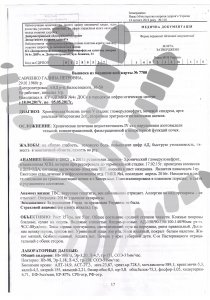 Діагноз: хронічна хвороба нирок V ст., хронічна ниркова недостатність IV ст. з порушенням азотовидільної, концентраційної, фільтраційної й інкреторної функції нирок.