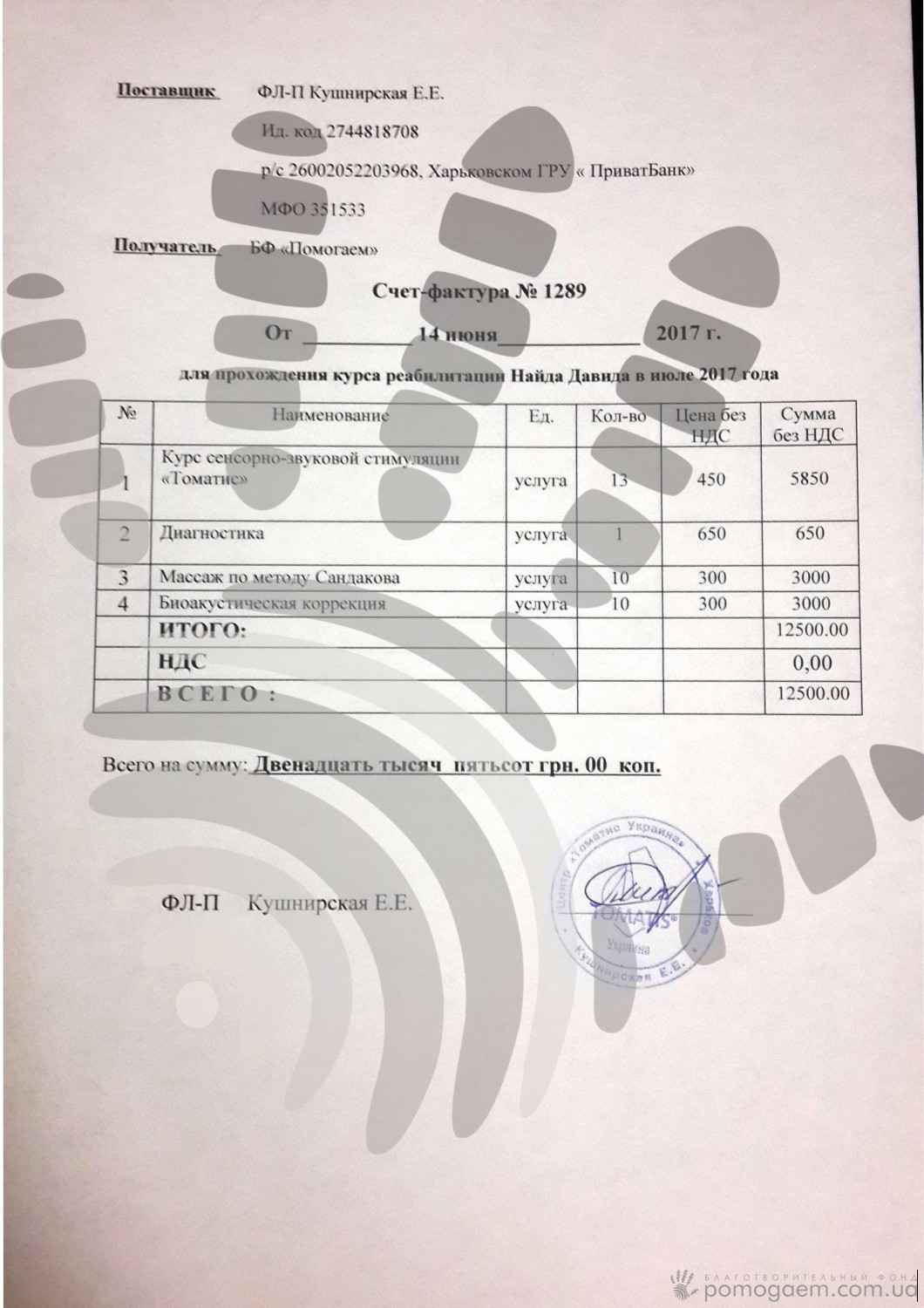 | 17.06.2017 | Сіроватко Ігор Анатолійович | 2 300,00 |
