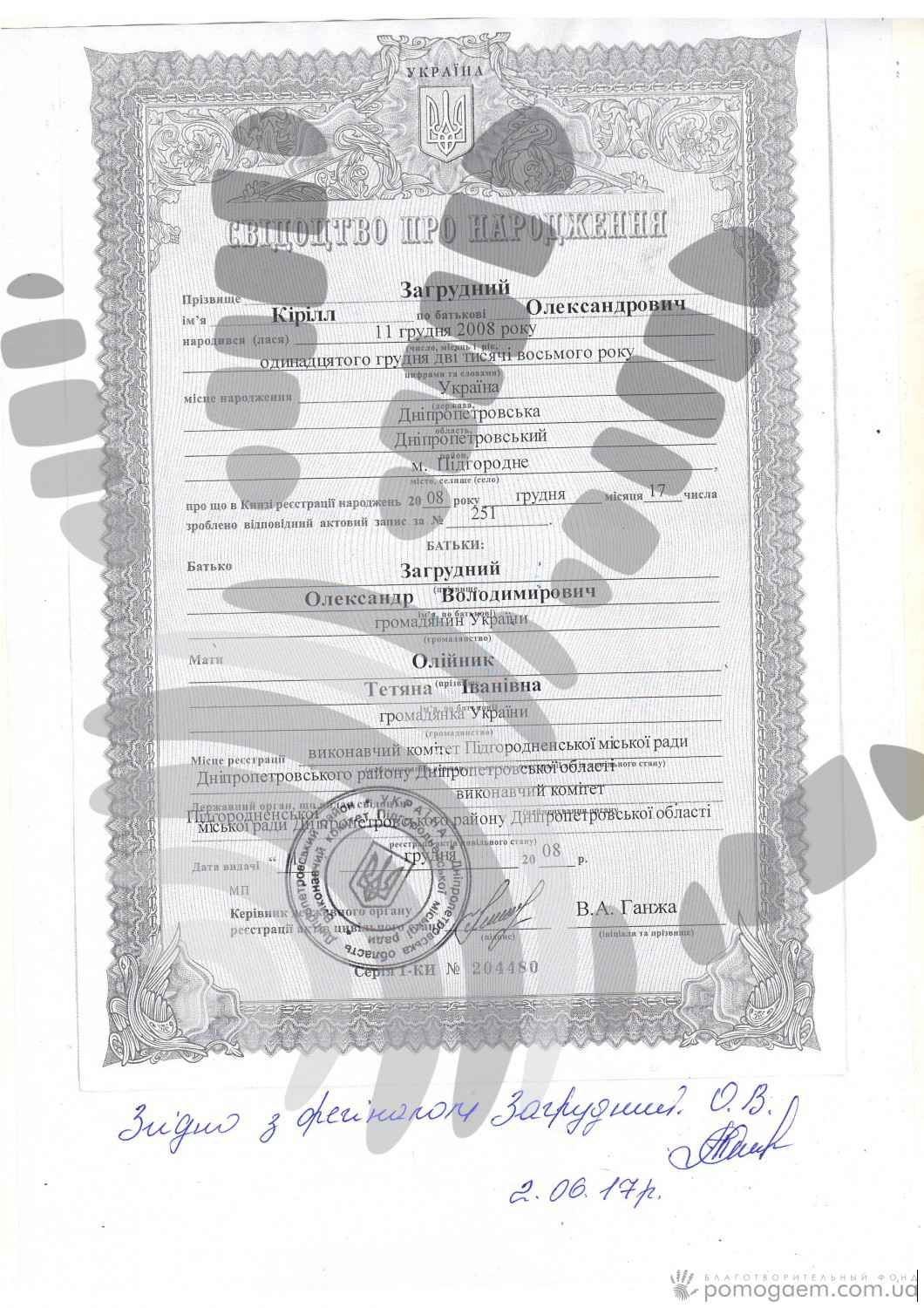 На Космічній зробили аналізи, рентген черевної порожнини. Попросили Тетяну купити ще одну плівку, щоб виключити помилку, зробили другий рентген. До Кірілла зійшлися 5 лікарів, зробили УЗД. Нарешті маму покликали до кабінету. «Апендицит?» - запитала перелякана мама. «Онкологія», - відповів лікар.