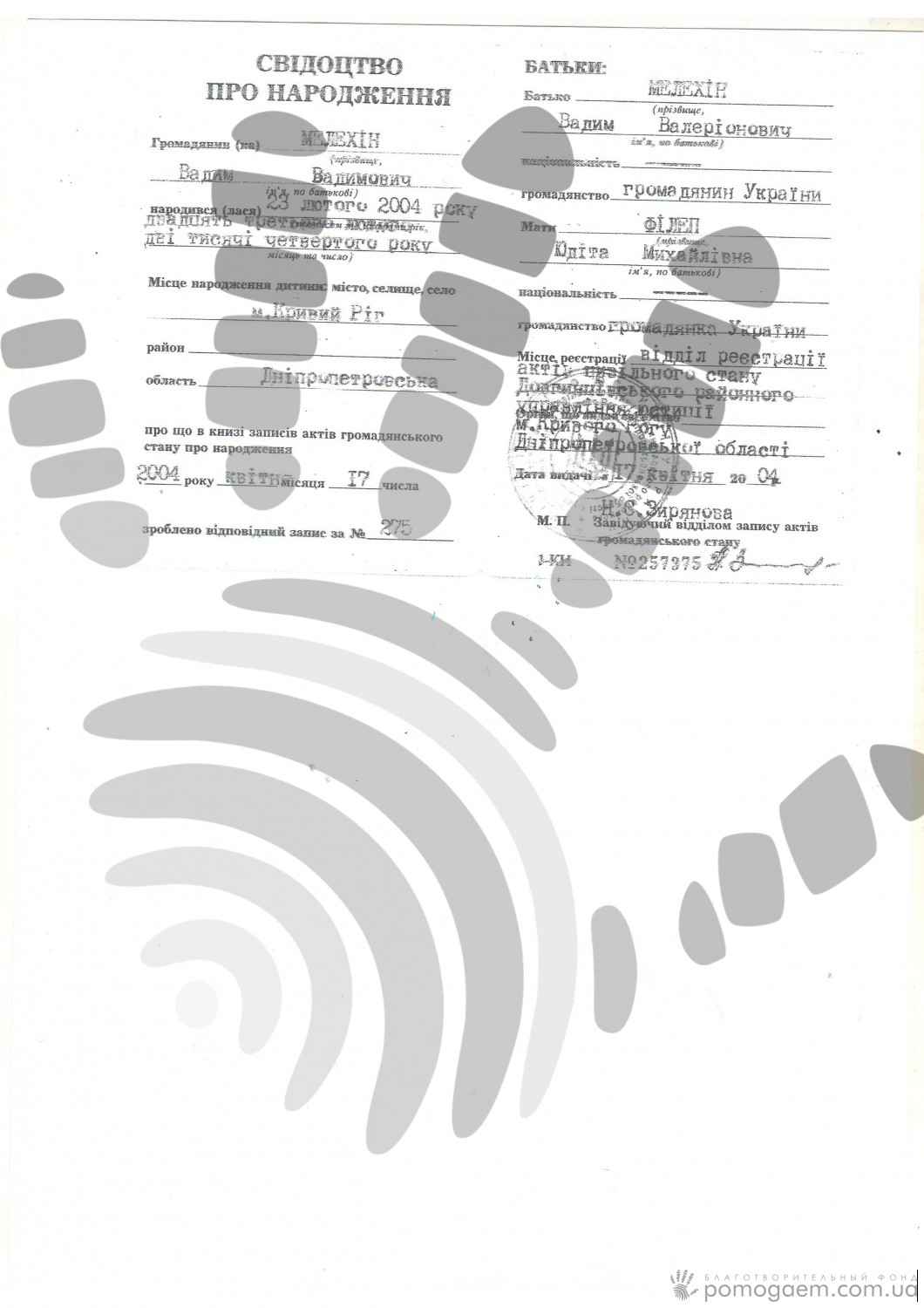 У цілому Вадим переніс вже 12 хірургічних втручань. Попереду дуже важлива операція: закриття дефекта черепа титановою пластиною. Вартість імпланта – 12 000 грн. За 3 роки мама витратила на лікування сина 200 000 грн, гроші збирали за допомогою небайдужих людей і благодійних фондів. Сім'я Вадика багатодітна, він має 9-річний брат і 5-річна сестричка. На жаль, батько тільки іноді допомагає коштами на лікування Вадима, живе він окремо.