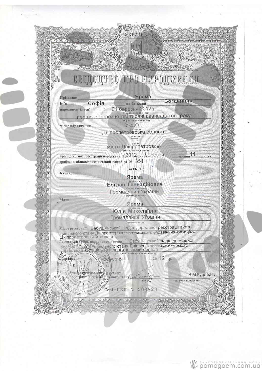 Дата народження: 01.03.2012