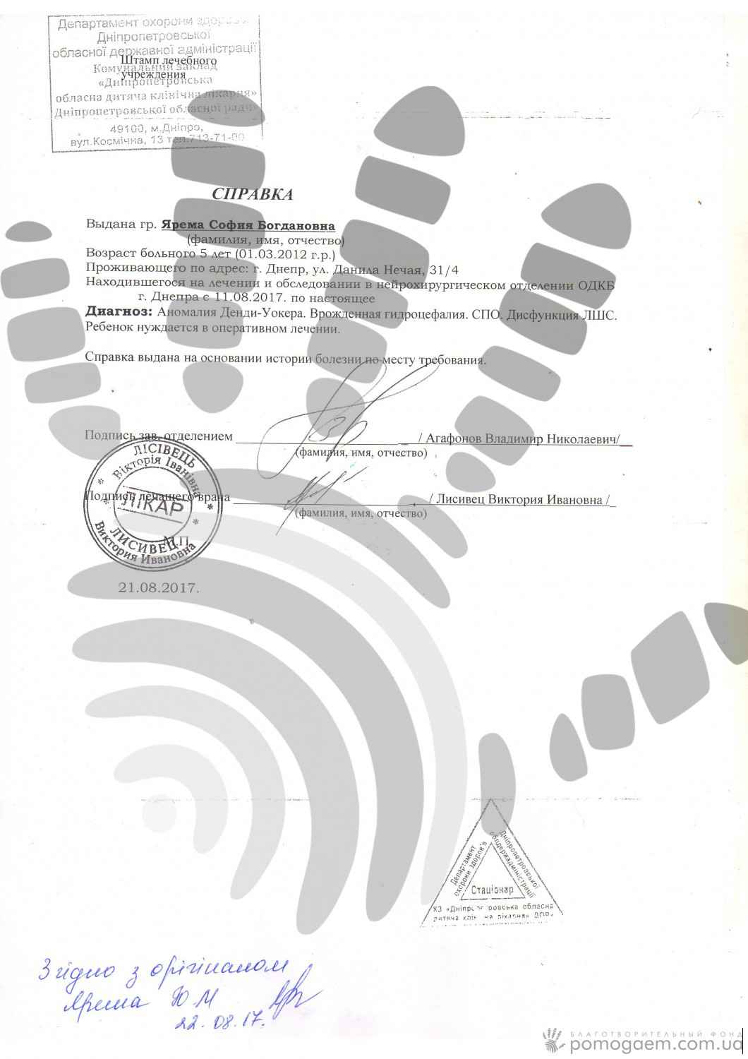 Зараз Соня, як і раніше, знаходиться в лікарні. Дуже хоче пограти з ровесниками, але сил вистачає ненадовго – починає боліти головка, й дитина знову лягає. Оперувати потрібно якомога швидше, а вартість шунта – 15 000 грн, які Юлі просто нема звідки взяти. Батько Соні матеріально майже не бере участі в її житті. Крім нас із вами, дівчинці нікому допомогти. Зібрати 15 000 грн за тиждень важко, але ми віримо, що з вашою допомогою все вийде!