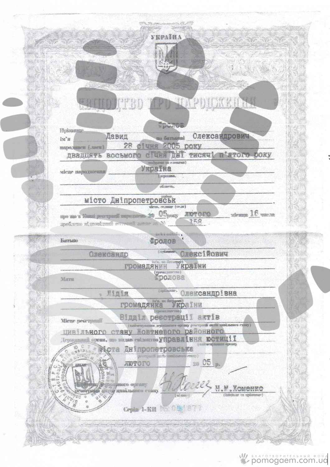 «В один зі сніжних днів 2005 року, 28 січня народився мій довгоочікуваний син Давид. Ріс він напрочуд спокійною дитиною. Спав довго, багато, тихо, в мамі майже не мав потреби. Ну просто не син, а нагорода. Молода мама 20 років і не здогадувалася, що зайві 5кіло й мертвий спокій мали стурбувати. Любила, грала, тискала й насолоджувалася сином. Була відповідальною й ходила в поліклініку за розкладом.