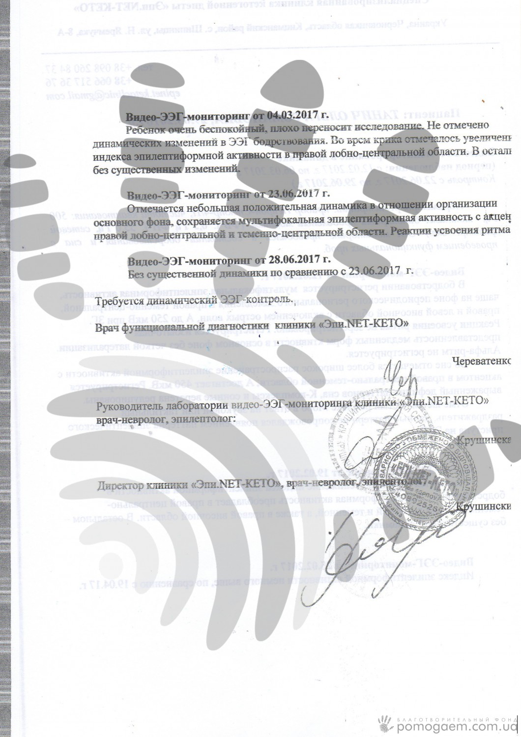 Оліна мама Аня (медичний працівник за освітою) дізналася про те, що в Україні відкривається перший центр кето-терапії, яка давно успішно застосовується за кордоном для лікування епілепсії. Ми з вами зібрали понад 80 000 грн на оплату послуг центру, й Оля вирушила до Чернівців.