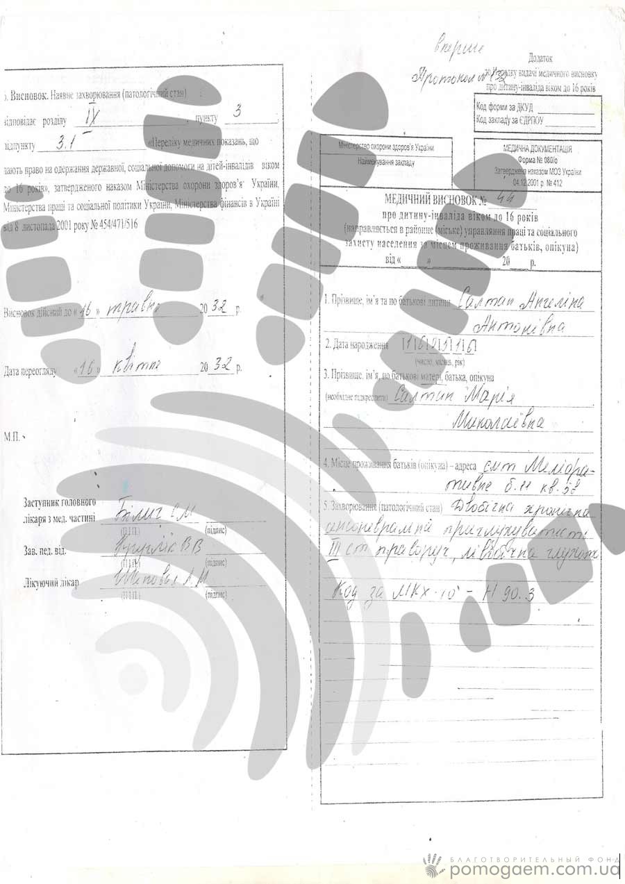 Марія звертається до нас: «Добрі люди, допоможіть, наскільки дозволяють ваші можливості. Будь ласка, відгукніться! Час спливає дуже швидко, а з ним і надія на повноцінний розвиток донечки. Чути слова любові від найближчих людей і говорити їм у відповідь такі ж слова – безцінний дар. Допоможіть дитині почути життя!»