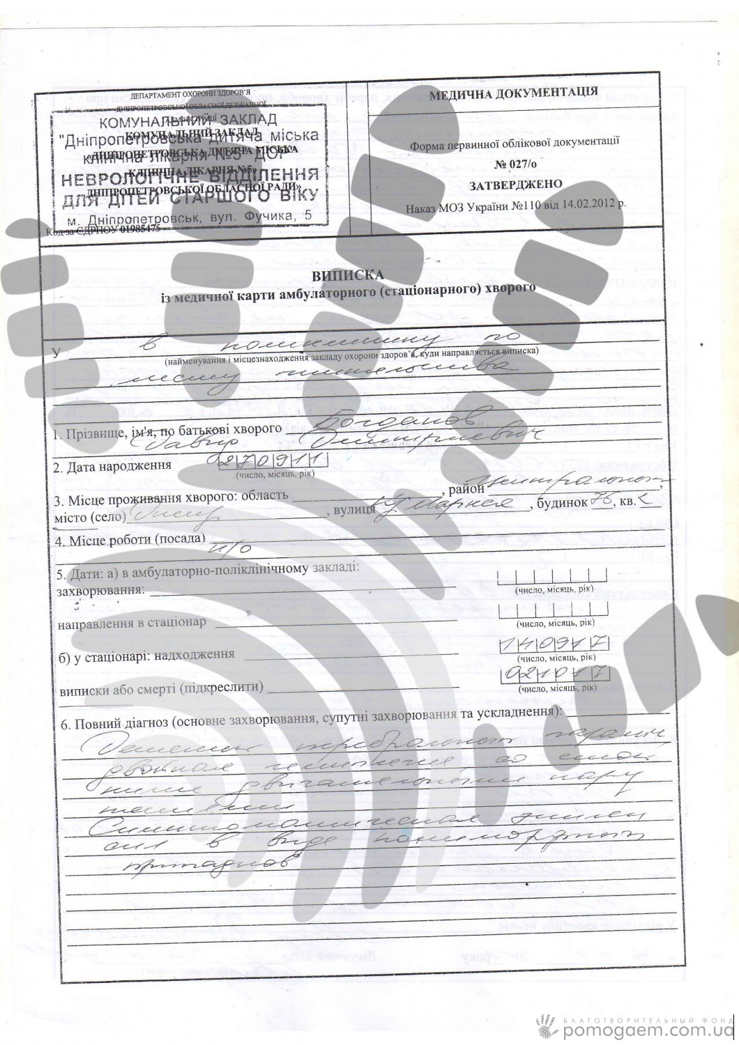 Виписка часто сприймається батьками як щасливий кінець, але іноді вона виявляється тільки початком шляху. Дуже непростого шляху. У карті Давида стоять діагнози ДЦП, подвійна геміплегія, симптоматична епілепсія.
