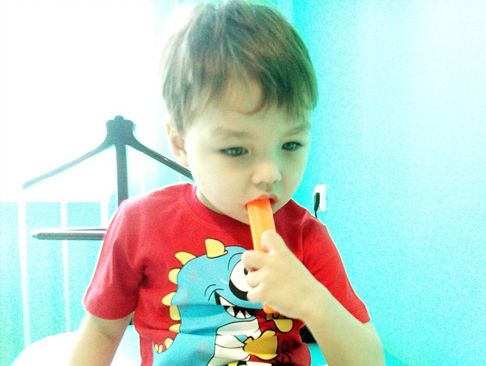 Сьомушка чує і розуміє мамині прохання, але поки що їх не виконує. Наприклад, він знає, що таке ложка, але сам їсти не буде, все буде розкидано, та ж ситуація і з походому туалет, ще доводиться користуватися памперсами. Хлопчик гіперактивний, постійно в русі, улюблений мультик «Собачий патруль» він дивиться, пританцьовуючи навколо телевізора.