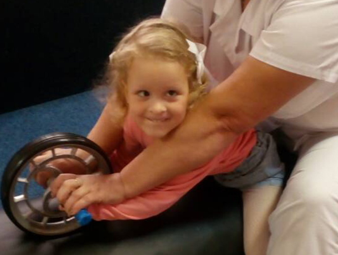 Зарядки, масажі, уколи – все це не допомогло уникнути інвалідності й діагнозу ДЦП. Коли півроку тому Мелашіна мама звернулася до нас, дівчинка не вміла сидіти, стояти й повзати. При спробах ходити з підтримкою, через вивих тазостегнових суглобів ніжки перехрещувалися й маленька падала. У харківському Інституті патології хребта та суглобів Мелашу двічі прооперували: встановили титанові пластини, щоб випрямити ніжки.