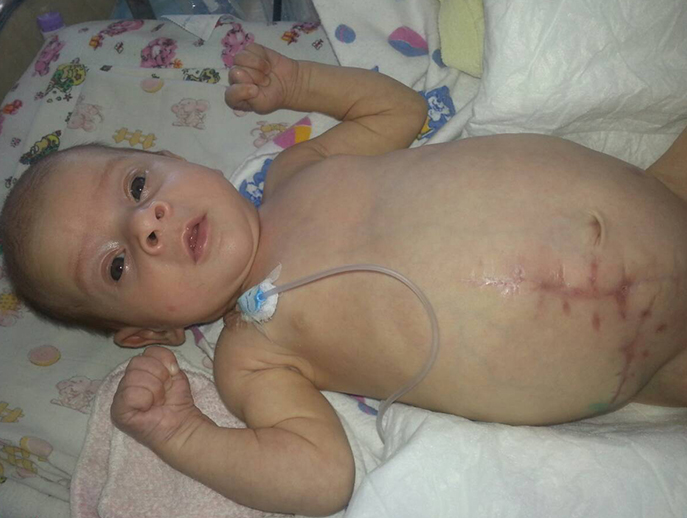 Крихітка народилася 6 січня цього року. В її медичній довідці навіть немає імені, тільки прізвище й довгий список діагнозів. А починалося все цілком благополучно. Хоча мамі під час вагітності доводилося кілька разів лежати на збереженні, немовля протрималася всередині майже весь необхідний термін – 37 тижнів. УЗД не показувало ніяких відхилень. Але коли дівчинка з'явилася на світ, роздутий животик налякав лікарів. Есенію відразу перевезли до Дитячої лікарні ім. Руднєва та в той же день прооперували. Виявили розірваний кишечник, весь у спайках і перитоніт.