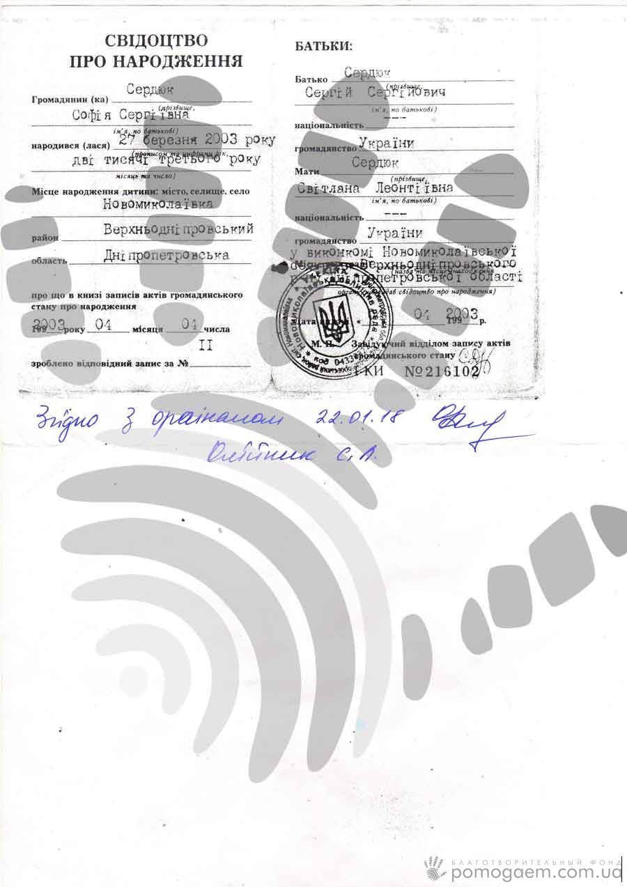 З Сонечкою Сердюк ми знайомі вже не один рік. У дівчинки ДЦП та порушення слуху, і ми з вами неодноразово допомагали їй: збирали кошти на слухові апарати, реабілітацію й медикаментозне лікування.