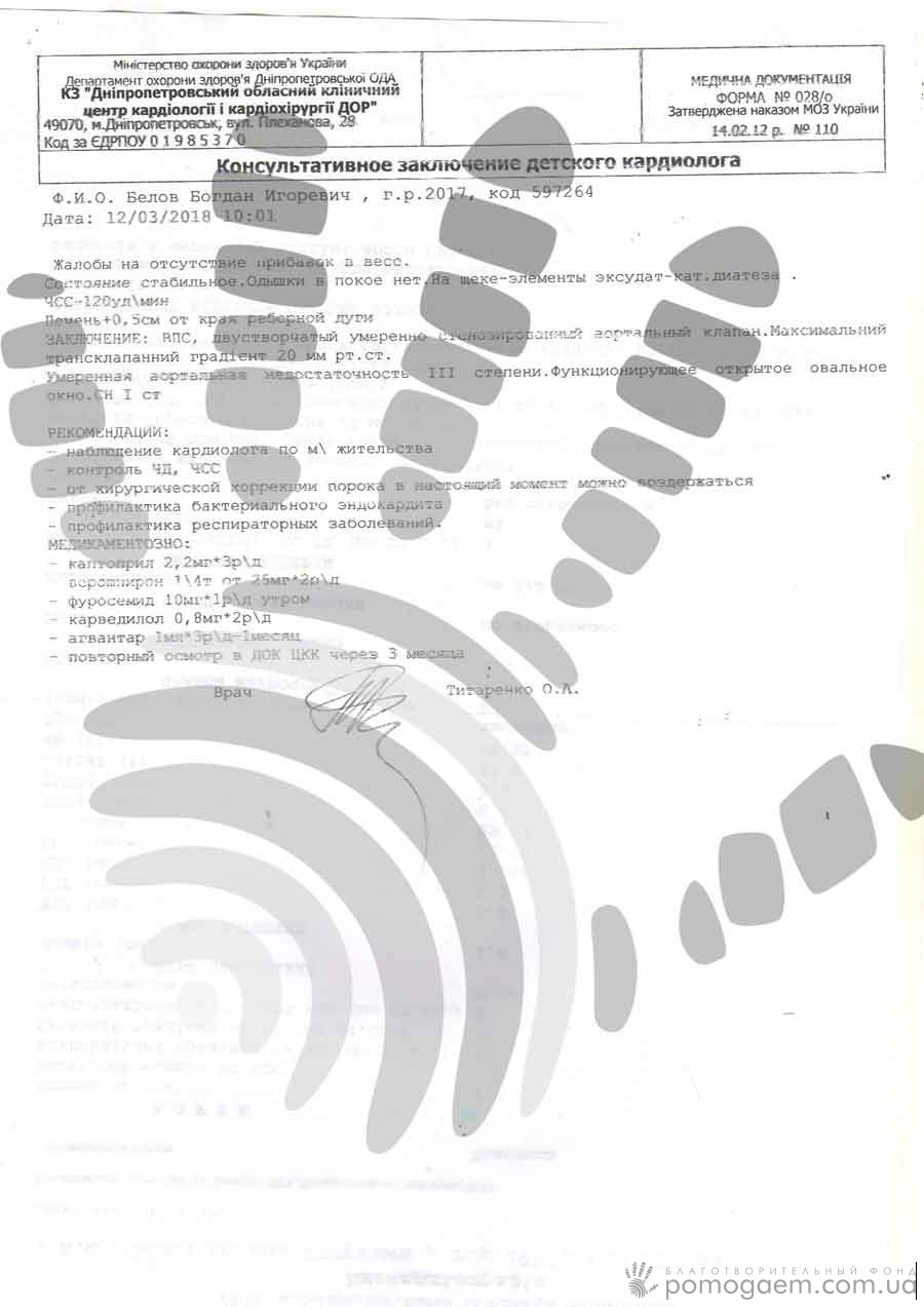 Мама зателефонуваладо Національного інституту серцево-судинної хірургії ім. Амосова, й Богдана чекають там на обстеження. Хлопчику зроблять кардіографію, ехокардіографію, УЗД серця, можливо, призначать, ще якісь дослідження й аналізи. Для того, щоб оплатити їх, знадобиться близько 5 000-6 000 грн. Та ще потрібні кошти на ліки – ті, які Богдан приймає постійно, й на нові призначення.