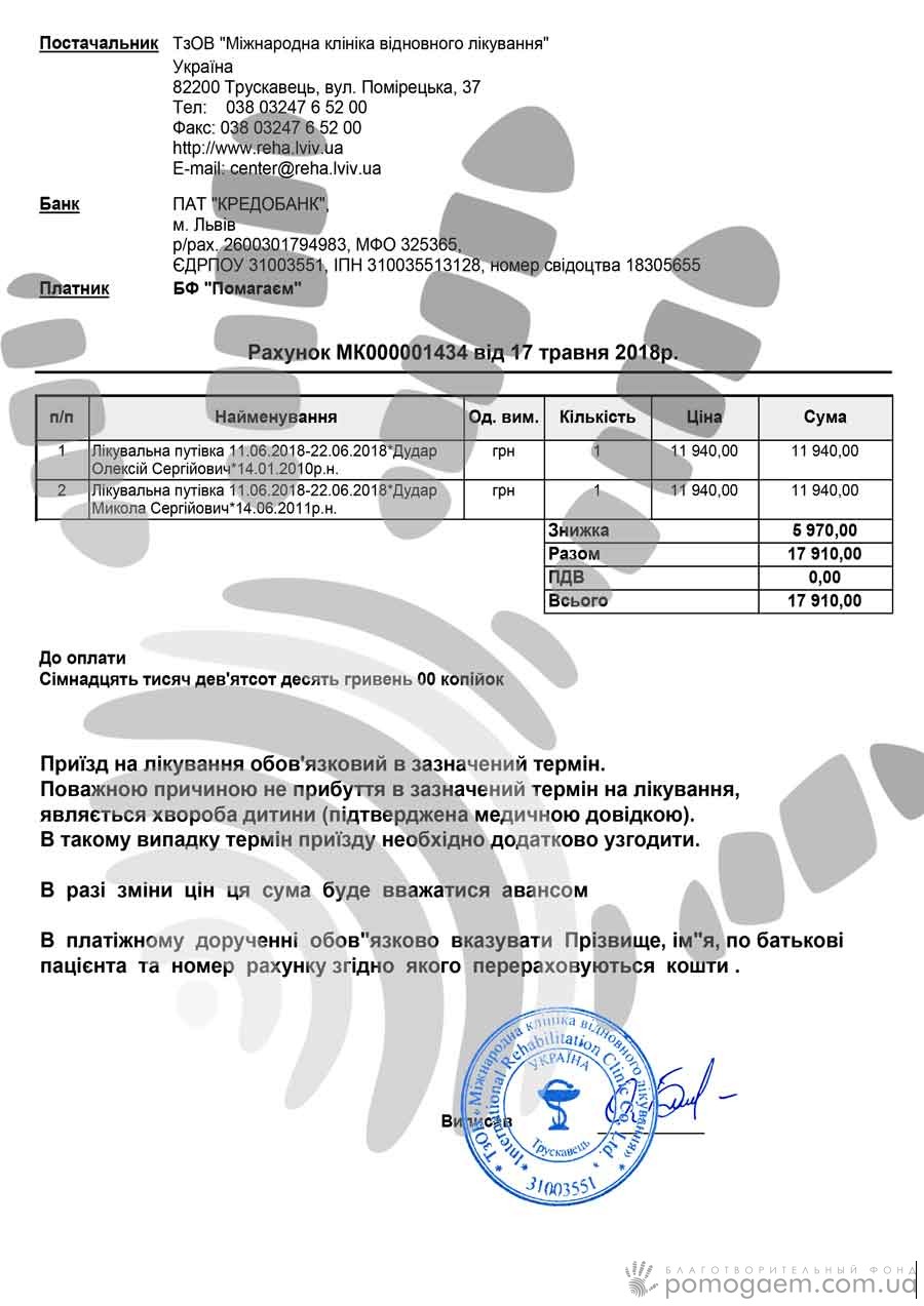 11 червня у Льоші й Колі повинна початися реабілітація в Трускавці. Для цього потрібно зібрати 21 492 грн. Багатодітним батькам годі й шукати таких грошей без допомоги небайдужих людей. Давайте підтримаємо Льошу й Колю!