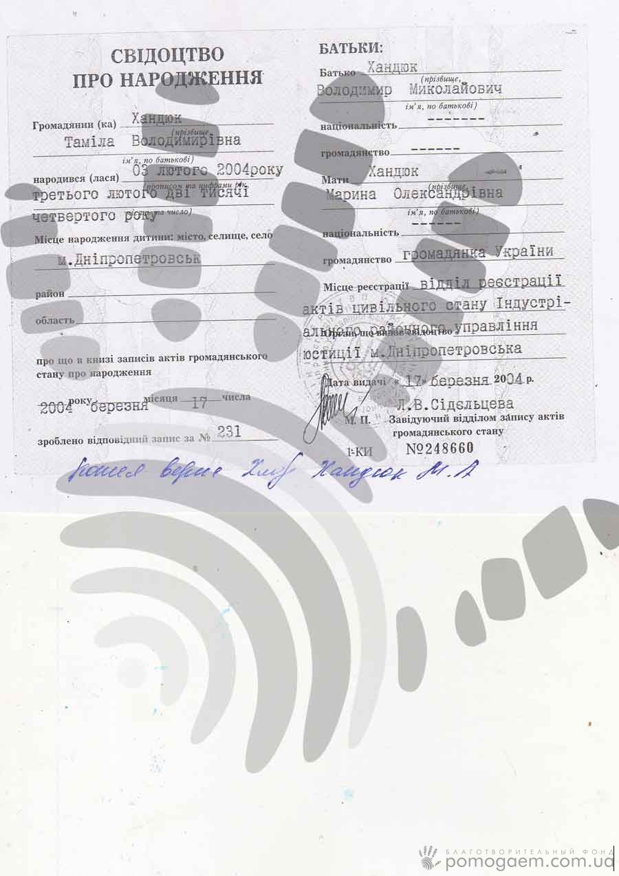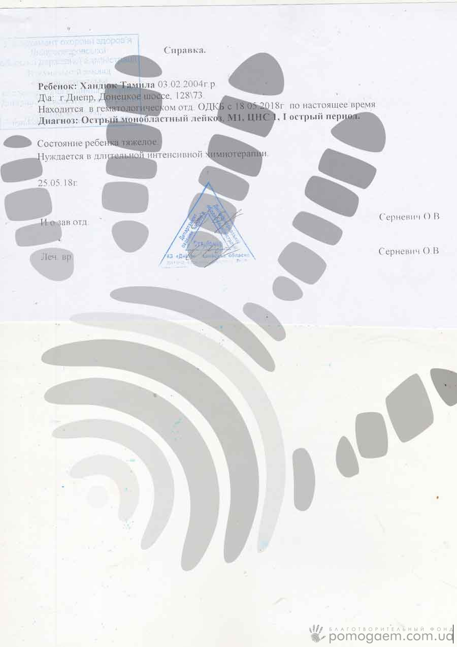 Знайомтеся, Таміла Хандюк, творча людина й шкільна активістка. Дуже хочеться розповідати тільки про те, як вона чудово співає й танцює, малює і вишиває. Але доводиться писати про неї зовсім з іншого приводу: цієї весни в дівчинки діагностували гострий монобластний лейкоз.