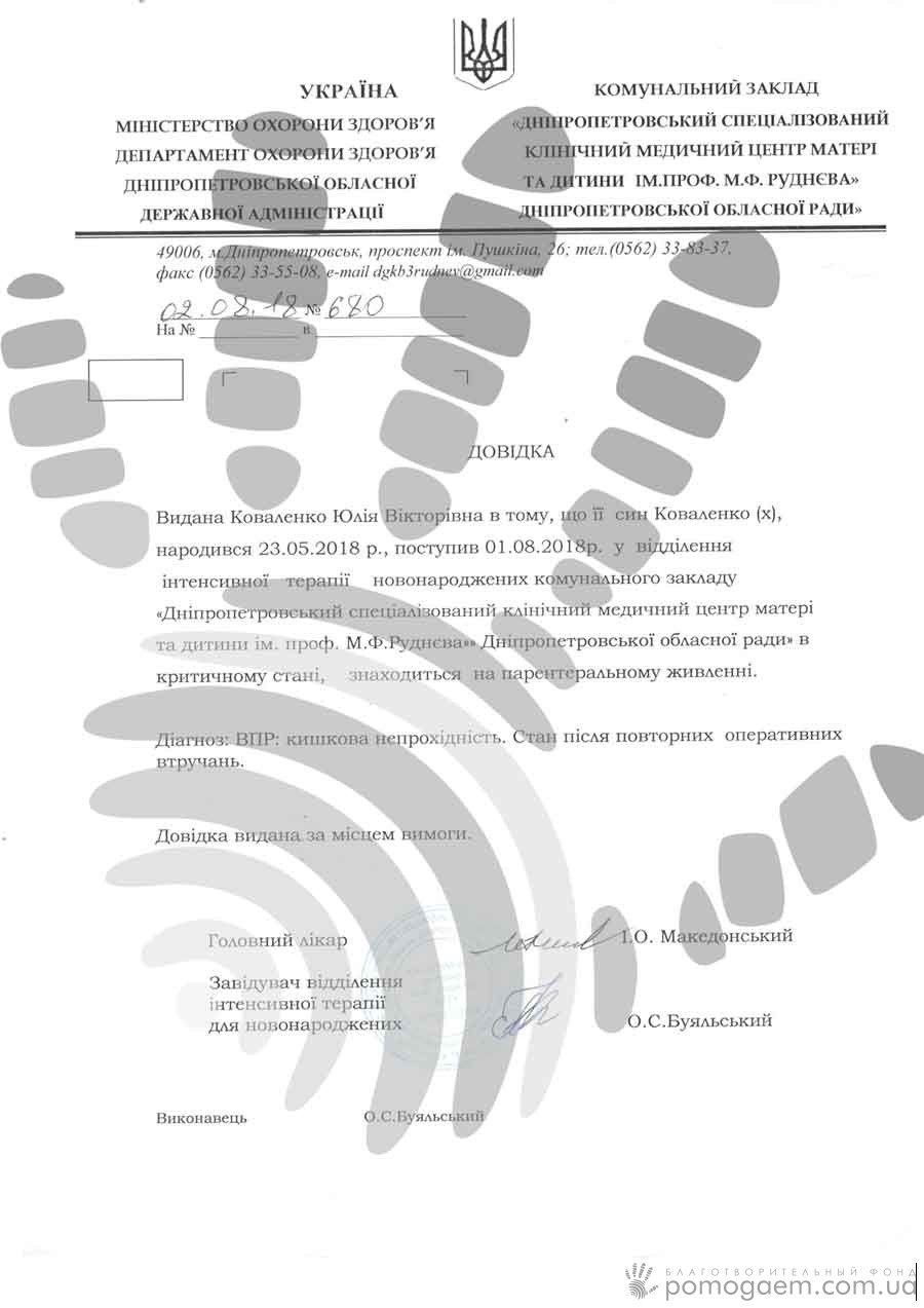 Трьох довгоочікуваних, улюблених діток ростять Юлія й Антон Коваленко, хоча мамі всього 23 роки. Двоє старшеньких народилися здоровими в 2015 і 2016 році, а молодший Назарчик з моменту народження (23 травня 2018) і по сьогоднішній день знаходиться в Медичному центрі матері й дитини ім. Руднєва.