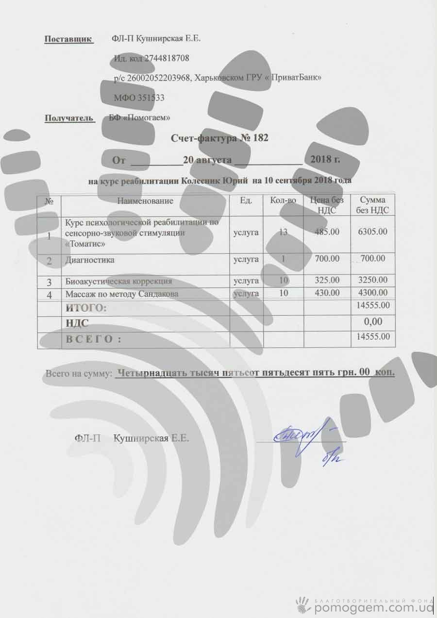 Мама Юрочки дуже хоче, щоб її синочок відчував себе в житті повноцінною людиною і робить все, що в її силах. Але одній їй з цим не впоратися, тому ми просимо допомоги у вас, друзі, для оплати чергового курсу в центрі Томатіс- терапії (м.Харків), вартістю 14555 грн, який почнеться зовсім скоро - 10 вересня. Підтримайте Юрочку!