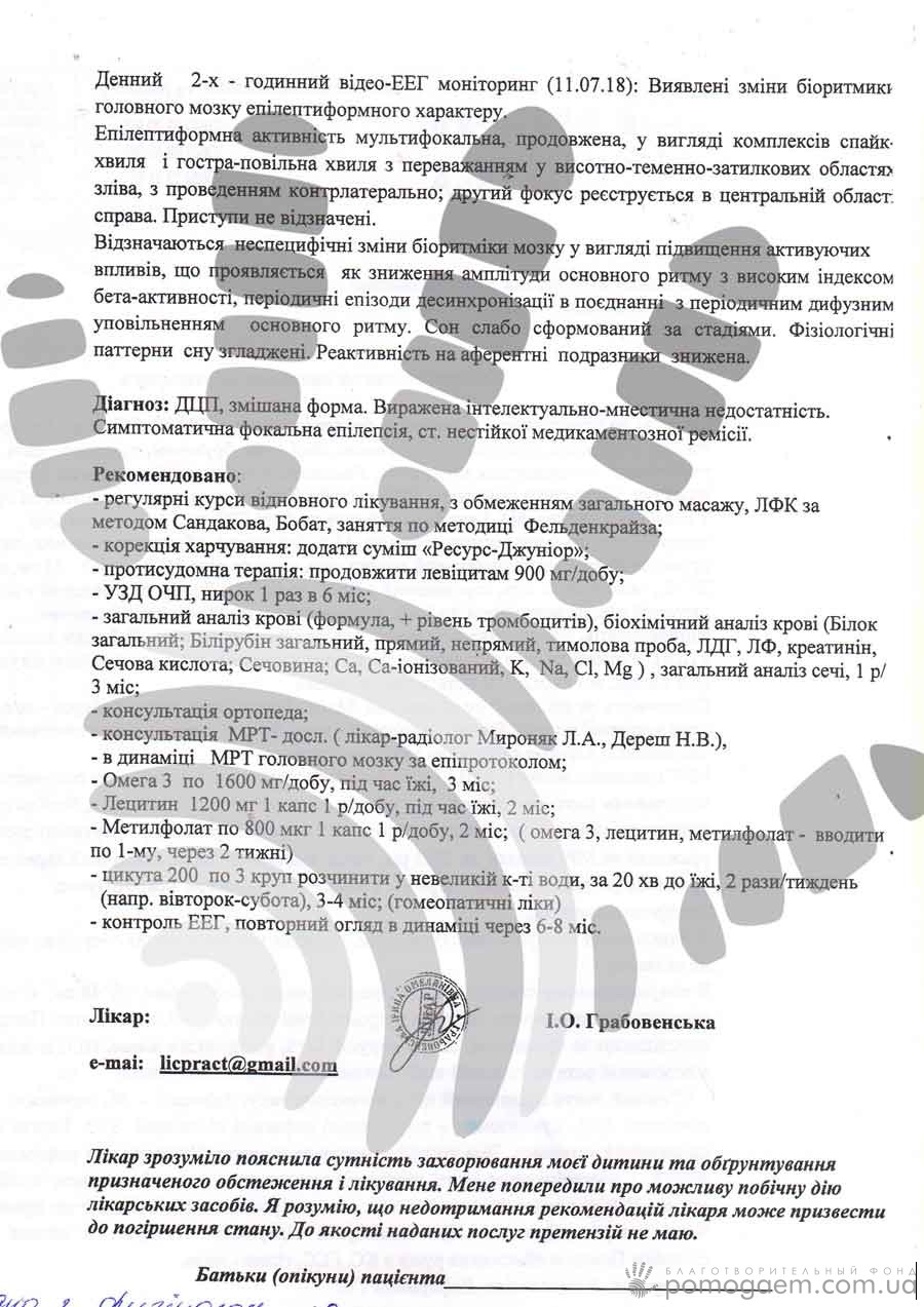 Нагадаємо, що 5 років тому Юра з'явився на світ шляхом екстреного кесаревого розтину з триразовим обвиттям пуповини навколо шиї. Доступ кисню до мозку був перекритий, хлопчик впав у кому. 4 дня Юра перебував в цьому стані, потім ще місяць провів у перинатальному відділенні. На цьому випробування для батьків не закінчилися. До року хлопчикові поставили діагноз ДЦП, подвійна геміплегія зі значними порушеннями статико-моторних функцій. Весь цей час не припинялися судоми.
