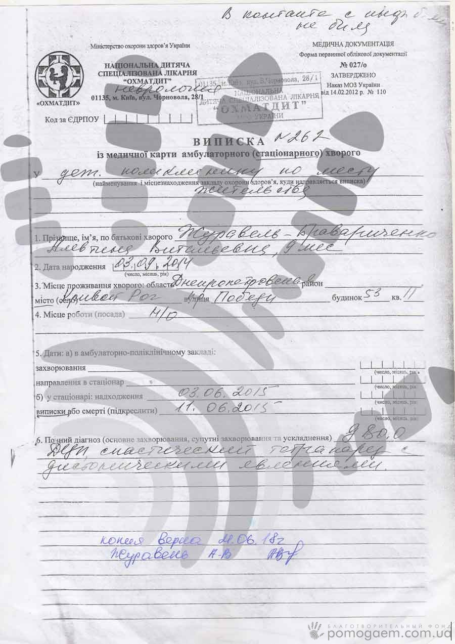 Але потрібно регулярно проходити спеціальні курси в реабцентрах. У жовтні на Алю чекають у Трускавці. Для того, щоби дівчинка змогла туди поїхати й пройти такий важливий для неї етап лікування, треба зібрати 11 646 грн. Родині дуже потрібна допомога й підтримка добрих і чуйних людей.