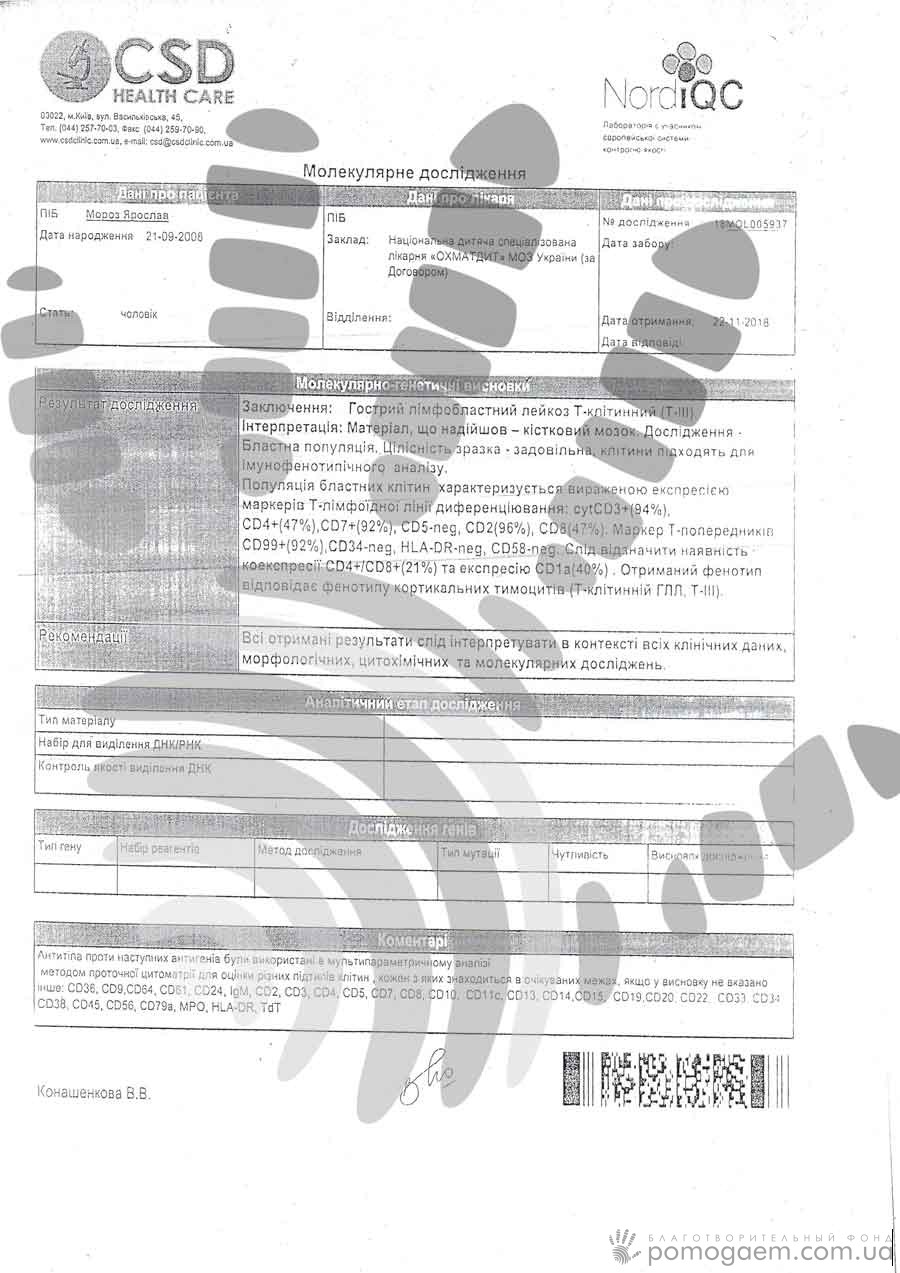 Дитина проходить перший протокол хіміотерапії. Незважаючи на всі складнощі, погане самопочуття, Ярослав не здається. Але до одужання ще далеко. Рідні Ярослава роблять усе можливе, щоби хлопчик отримував необхідні йому препарати. За два місяці сім'я вже витратила біля 50 000 грн. Але це тільки початок.