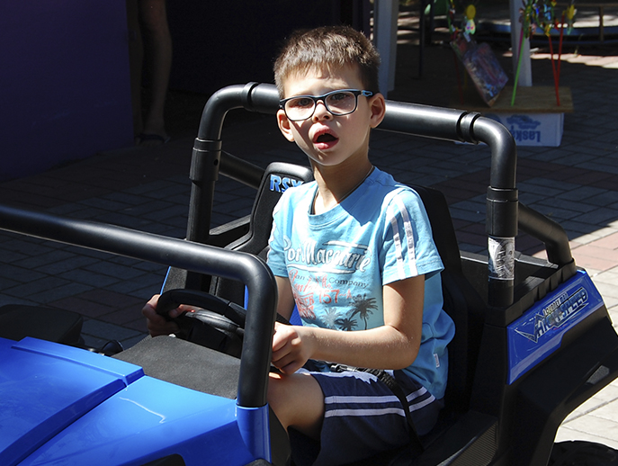 Є у Льоші великий прогрес і в фізичному розвитку: він краще ходить, довго гуляє з мамою. Коли вони були в Трускавці – майже не користувалися коляскою, обійшли всі околиці пішки. Набагато краще розуміє звернену мову і виконує прохання, сам пояснюється жестами. До народження сестри Льоша займався в школі «Шанс» на вул. Паторжинського, потім урокидовелося тимчасово перервати, а зараз педагог ходить до них додому: вчать фігури, кольори, пори року, проводять творчі і музичні заняття.