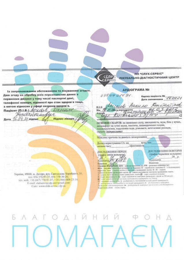 Лікарі з лікувально-діагностичного центру «Слух-сервіс» Дніпро підібрали відповідну модель і озвучили суму в 96 160 грн. Сучасний рівень розвитку медичних технологій дає Дані шанс добре чути – єдиному з усієї родини. Але тільки з вашою підтримкою можна буде використати цей шанс. Друзі, давайте допоможемо дитині чути звуки нашого прекрасного світу! Будь-яка пожертвувана вами сума дуже важлива для Дані.