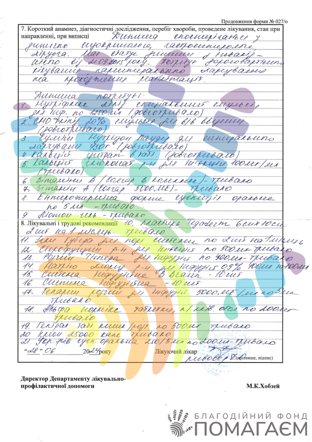 Для підтримки роботи травлення та організму загалом Рома приймає Креон, Гептрал, Укрлів, Альфа Нормікс та Ентерожерміну, вітаміни та мінерали. Щоб у кишечнику не розмножувалися хвороботворні мікроби, хлопчик приймає Альфа Нормікс та Ентерожерміну. Це ще 7 530 грн.