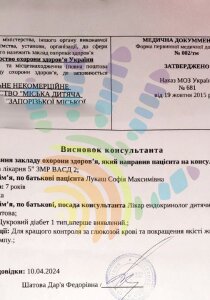 Ендокринолог призначив два препарати інсуліну, Новорапід та Тожео, рекомендував використання помпи та сенсорів. Вони не просто значно зменшують біль від уколів, а й не допускають різких «стрибків» рівня глюкози, згубних для внутрішніх органів та обмежуючих термін життя пацієнтів із діабетом.
