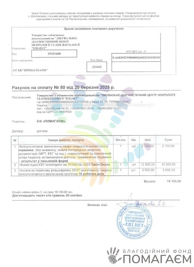 Вартість нічного відео-ЕЕГ-моніторингу – 19 100 грн. Це непідйомна сума для родини Олі. Анна виховує дочку сама, батько у житті дівчинки участі не бере. Навіть невеликий грошовий переказ допоможе Олечці пройти необхідне медичне обстеження!