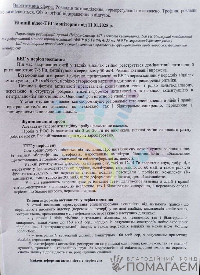 На щастя, судоми вдалося зупинити, але для контролю та коригування лікування у травні необхідно провести повторне обстеження.