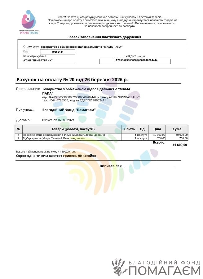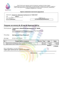 | 25.06.2025 | Українська Біржа Благодійності Міжнародний благодійний фонд | 43 680,00 |
