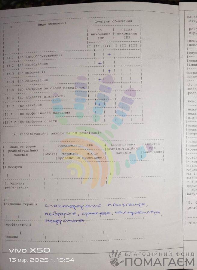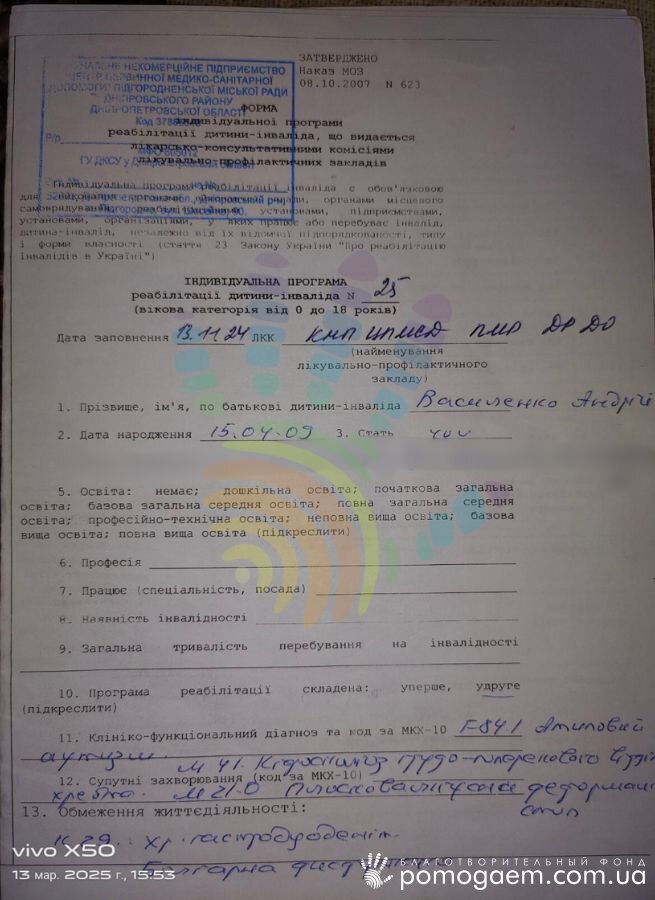 У хлопця деформація хребта, кіфосколіоз, який почав активно розвиватися з 2022 року, коли Андрій перейшов на онлайн-навчання. Через викривлення хребта порушується кровопостачання мозку, тому без регулярних курсів реабілітації зберегти досягнутий прогрес неможливо.