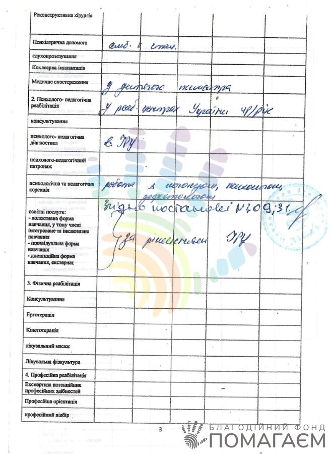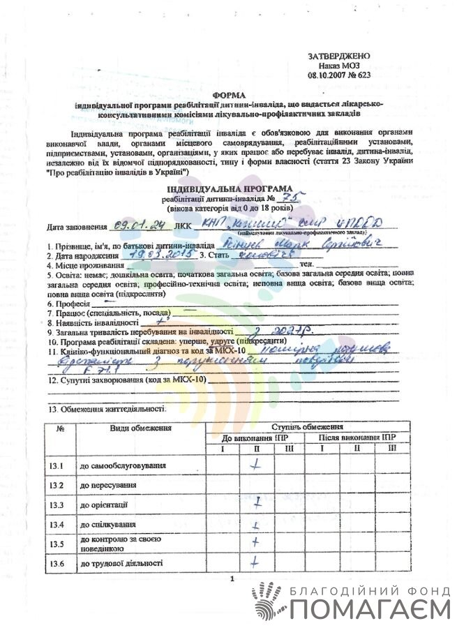 У 2021 році дитині діагностували помірну розумову відсталість з вираженим розладом поведінки, уваги та мовлення. Лікарі рекомендували корекційну допомогу та медикаментозне лікування.