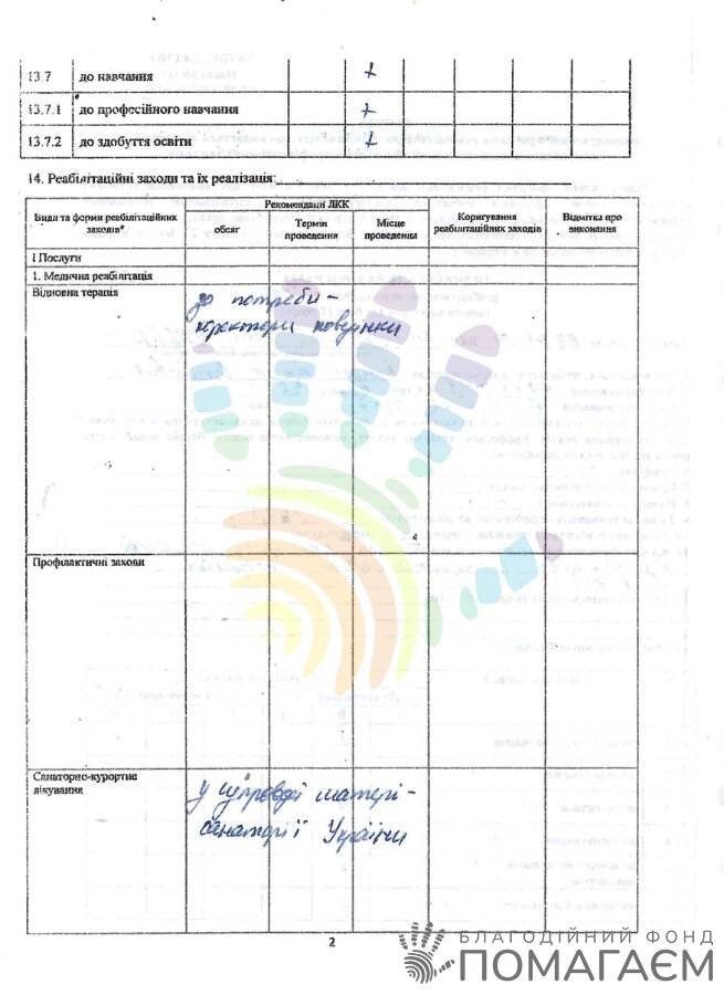 Хлопчику дуже важливо не зупинятись на досягнутому. У грудні його чекають на курс реабілітації в «Іоанновому центрі», який включає ЛФК і масаж для зміцнення м'язів та нормалізації м'язового тонусу.