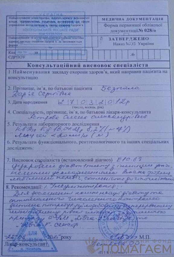 Багато років Даниїлові доводилося проколювати пальці більше 10 разів на день, щоб зробити аналіз крові на глюкозу. Проколи довго гоїлися, інфікувалися. Батьки шукали можливість полегшити страждання сина та знайшли. Даня почав використовувати сенсори Freestyle Libre 2. Завдяки цьому вдалося добитися компенсації захворювання та уникнути критичних стрибків глюкози.