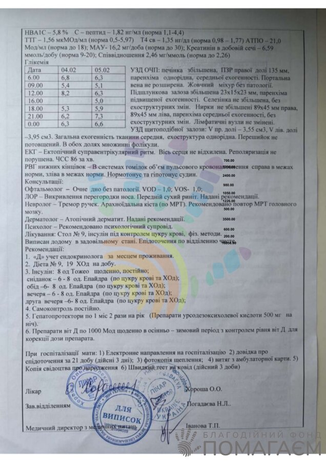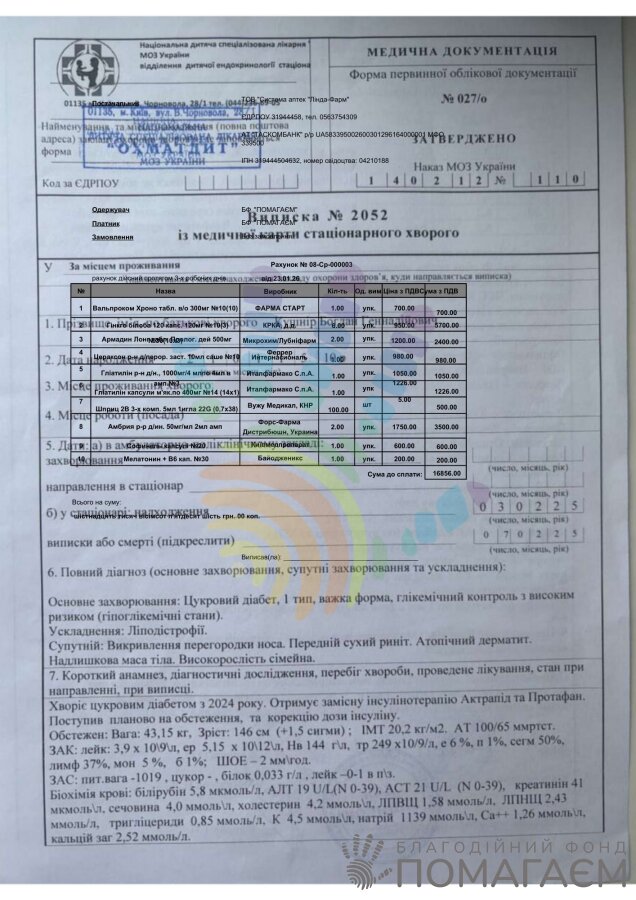 Про діагноз «цукровий діабет» родина дізналася у листопаді 2024 року. Коли рівень глюкози підвищився до 15 ммоль/л при нормі до 5, Богданчика терміново госпіталізували до дніпровської лікарні. Після підбору інсулінотерапії, повторного обстеження в ОХМАТДИТі та переходу на сучасніші препарати його стан вдалося стабілізувати.