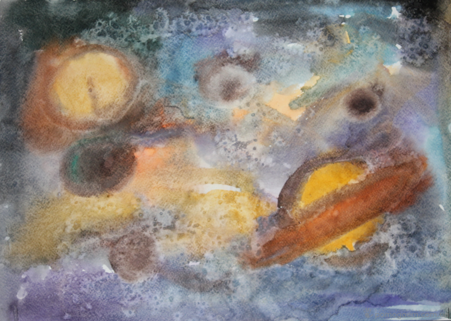 Соль, рассыпанная по влажному рисунку, размывает контуры, заставляет акварель причудливо