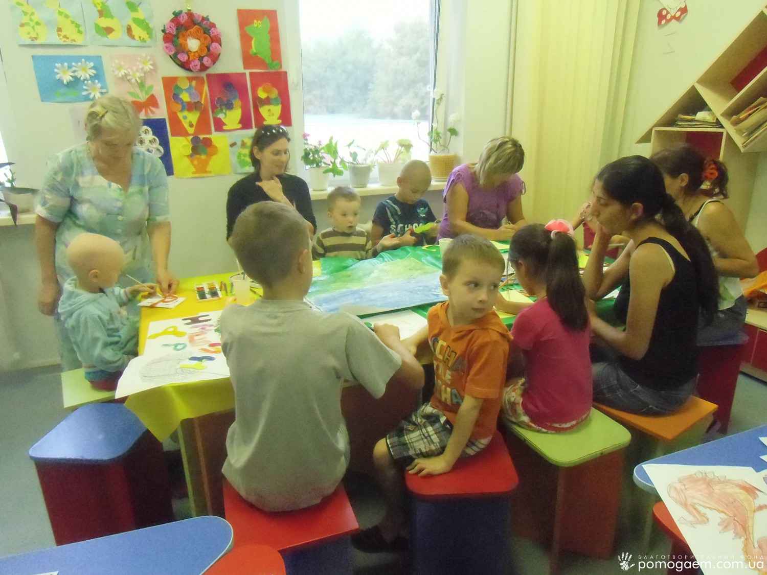 заняття діти встигли здружитися йнавчилися працювати разом. Один наклеює серединки в ромашки. Інший – аккуратно