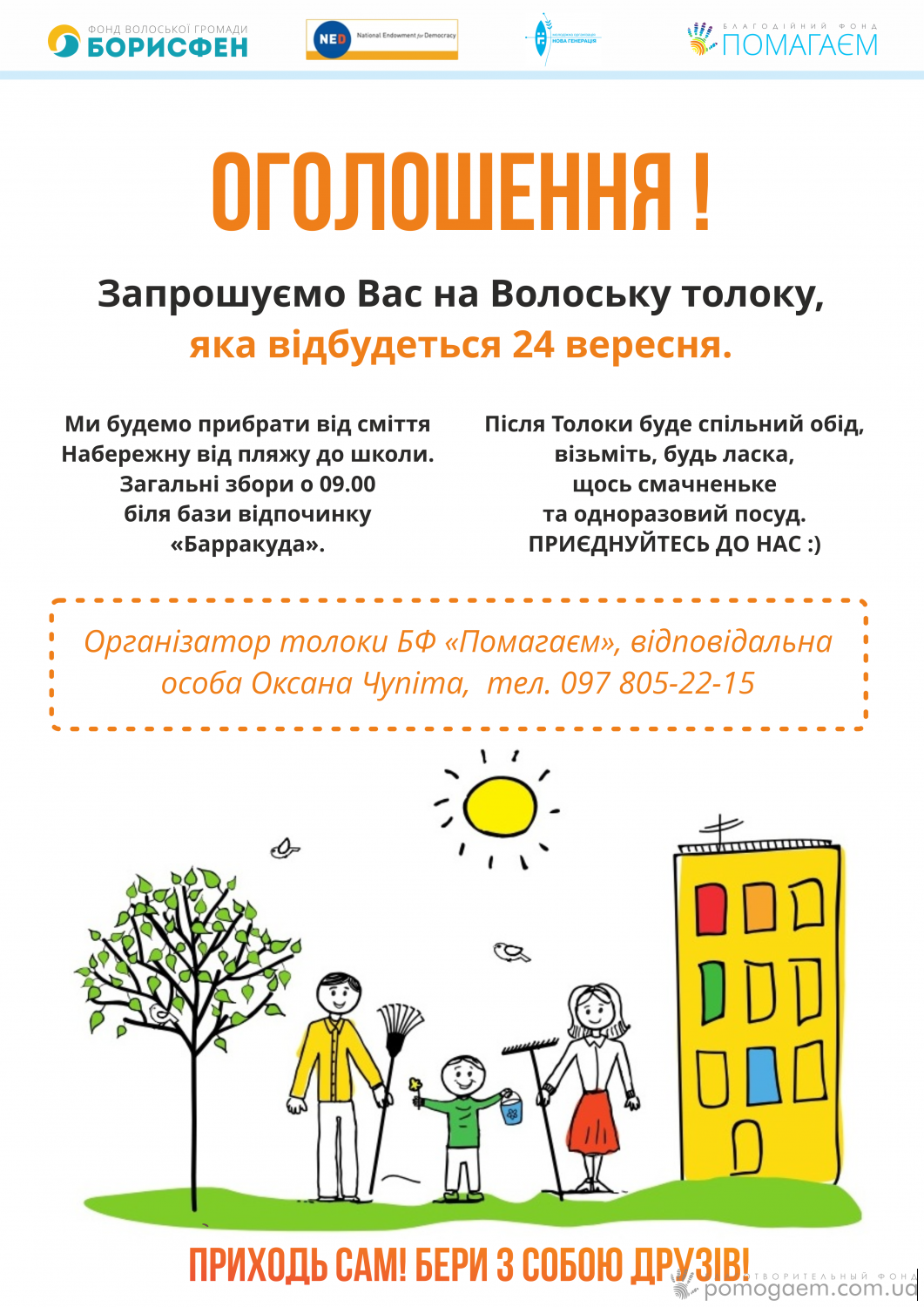 24 вересня запрошуємо Вас на толоку в селі Волоське.