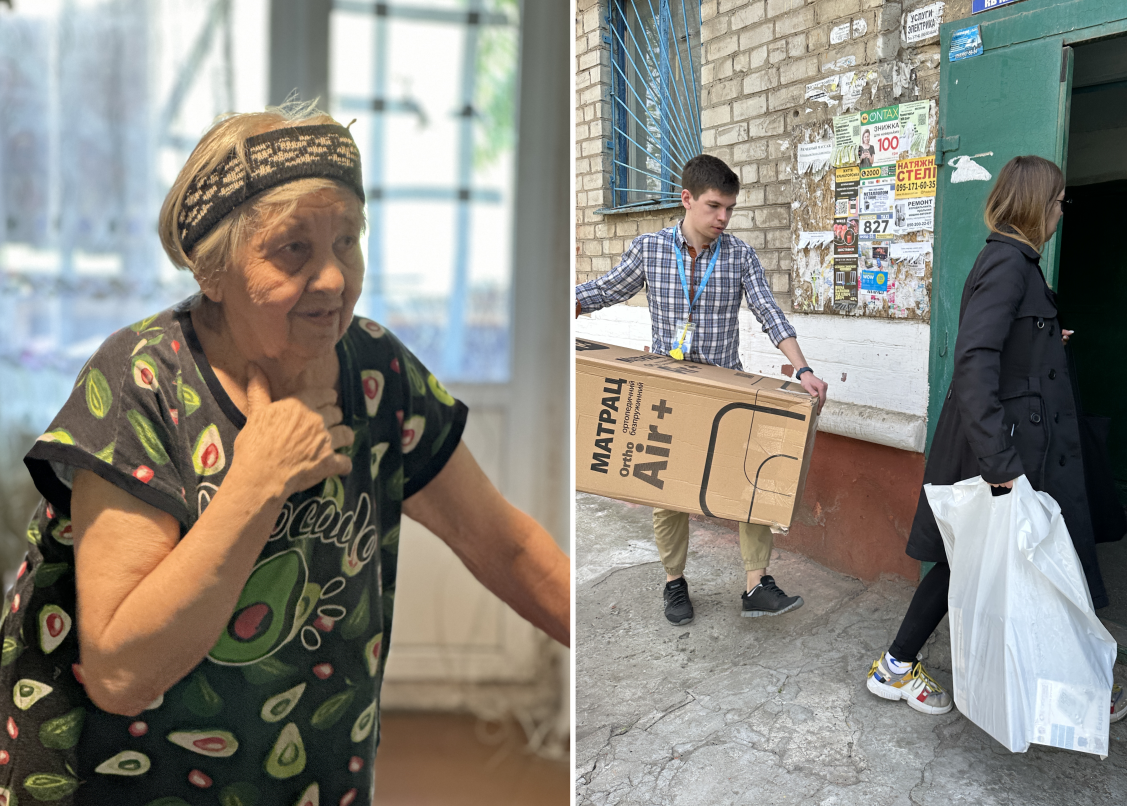 Пані Олена окрім засобів гігієни, замовила тонометр, плед і матрас. Матрас потрібен чоловікові, він прикутий до ліжка, а дружина дуже погано бачить.