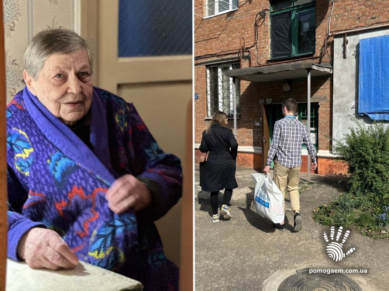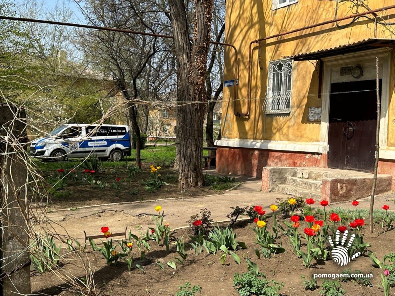 У ще одному будинку нас зустрічають дуже літні жінка з чоловіком. Жінка на милицях, але не вона наша клієнтка. Свекру жінки 99 років, саме йому ми привезли разом із засобами гігієни ходунки. Обличчя подружжя дуже втомлені. Хочеться чимось їх розрадити, і я починаю нахвалювати червонокнижні дібровні тюльпани у їхньому садочку. І справді чоловік оживає, розповідає, як привіз їх із лісу і як вони жваво розплодилися.