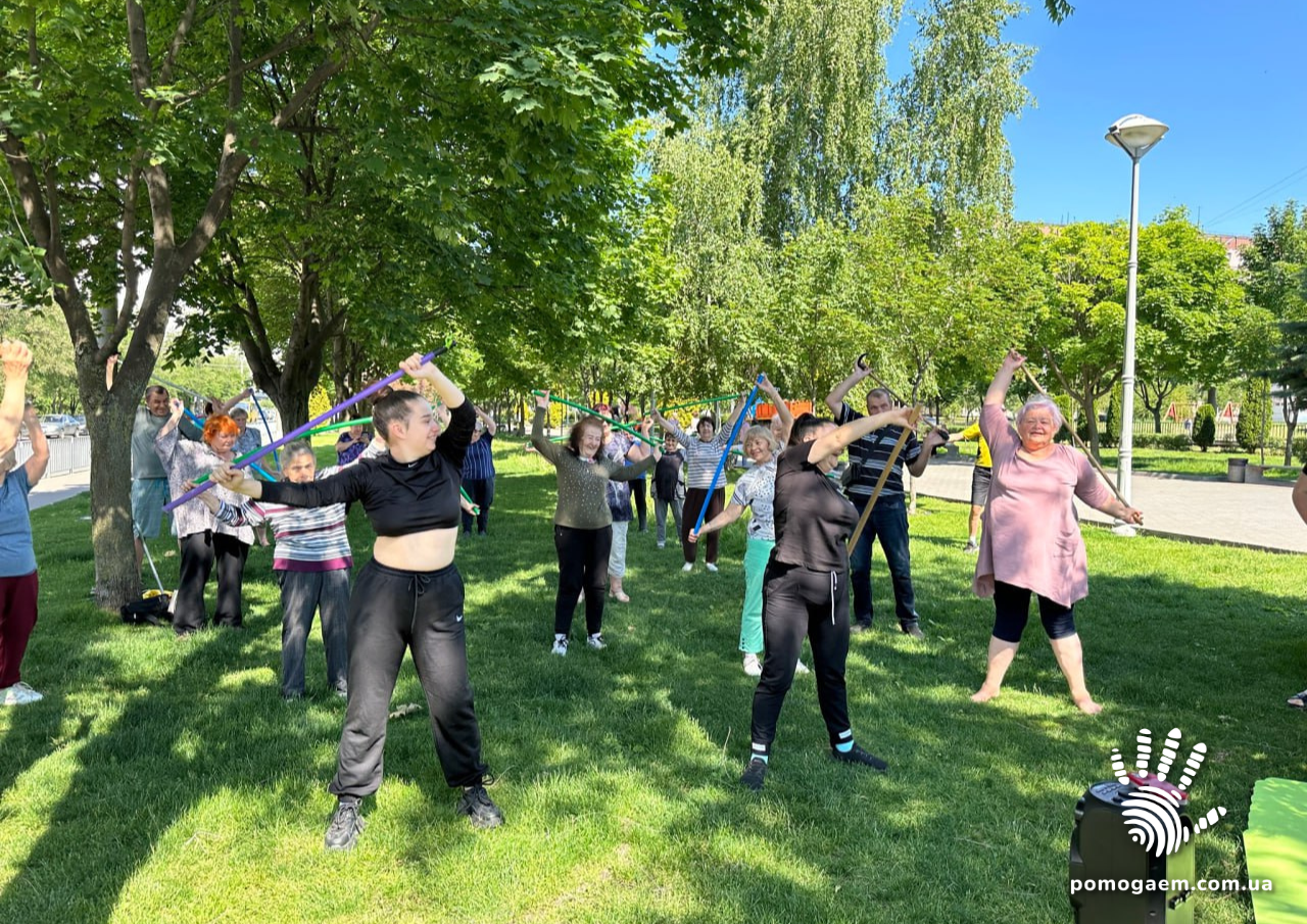 Проєкт розпочався з організації занять фізкультурою для літніх мешканок та мешканців шелтеру «Родинний світ». У рамках проєкту сплачувалося проведення занять, були придбані 15 гімнастичних паличок та килимків. Також ми придбали 7 столів для оснащення прибудинкової території та телевізор.