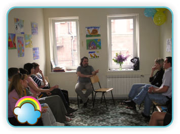 18 травня у тренінговому залі «Сяйва веселки» пройшла дуже плідна цікава зустріч. До нас приїхали гість із Росії Олександр Гезалов і представники запорізького благодійного фонду «Щаслива дитина».