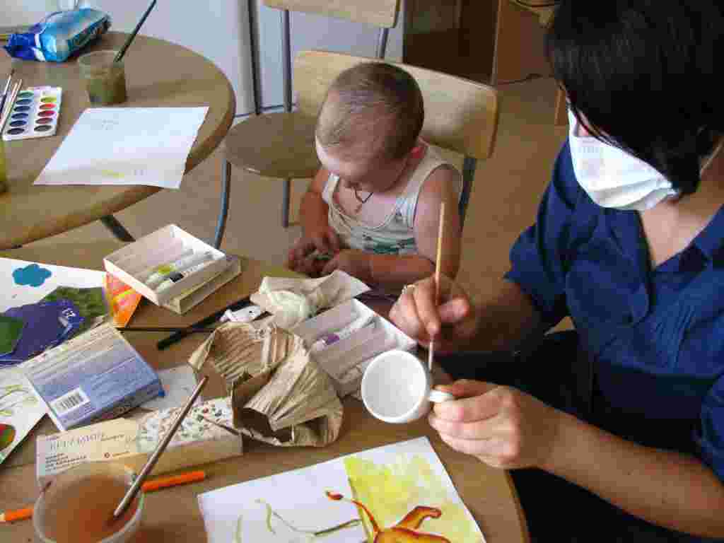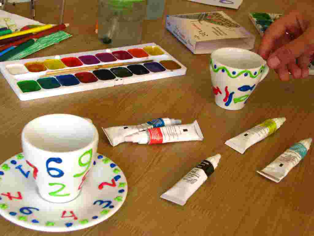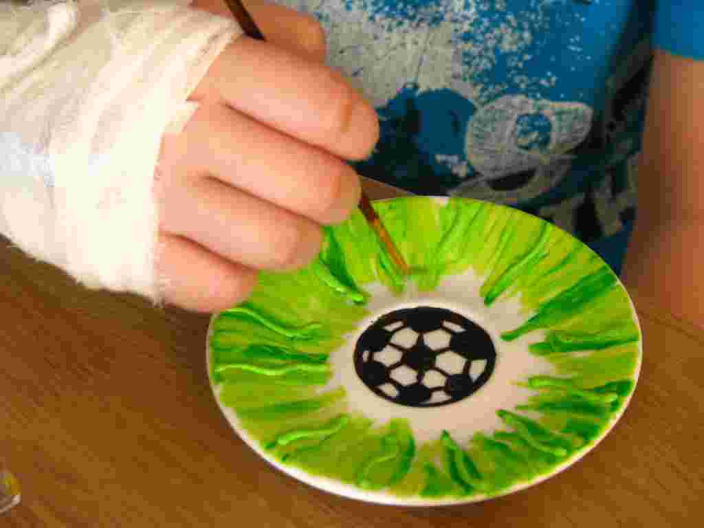 Суботнім ранком ми приїхали до дитячого відділення гематології з сильним бажанням провести час радісно і творчо. У нас із собою були фарби по кераміці, набори чашок і блюдець. Коли ми зайшли до відділення, медбрат запропонував пройти по палатах і запросити дітей на творчі заняття. З нами малювали Віолетта, Кирюша з мамою, Гліб і пізніше приєднався самий творчий - Діма. Спочатку ми малювали аквареллю, під пензлями у діток з'являлися рибки, сонечка і африканські леви серед пустелі. Потім ми приступили до декорування чайних наборів. Перший набір «Цифровий» так як Гліб любить цифри і рахувати, Інна разом з Глібом намагалася не упустити жодної цифри, щоб всі вони були на чашці. Віолеті ми вирішили зробити «Морський» набір з рибками, водоростями, морськими зірками і мушлями. Діма довго вигадував, щоб таке намалювати, щоб потім подарувати молодшому братику. І ось натхнення прийшло! У нас вийшов чудовий, яскравий «Футбольний» сервіз. А коли ми вже зібралися йти, прийшов Єгорка Жосан, у хлопчика було таке величезне бажання малювати, що він прийшов в ігрову разом з крапельницею. Йому ми подарували «Ягідний» набір з полуничками, малинками та вишеньками. Дуже радісно було бачити що Єгорка вже ходить (коли ми були минулого разу Єгорка не міг самостійно ходити через те що відмовили ніжки).
