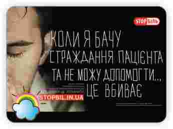 Всеукраїнська інформаційна компанія STOP.БІЛЬ ініційована Міжнародним фондом «Відродження» в рамках програми «Громадське здоров'я» і націлена на захист права невиліковно хворих людей на гідний спосіб життя, незважаючи на діагноз і життєві обставини.